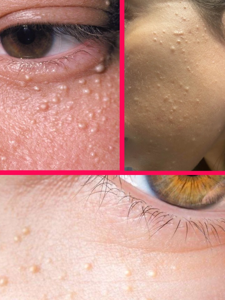 Czy zauważyłeś małe, białe grudki na twarzy, zwłaszcza wokół oczu, policzków lub czoła?