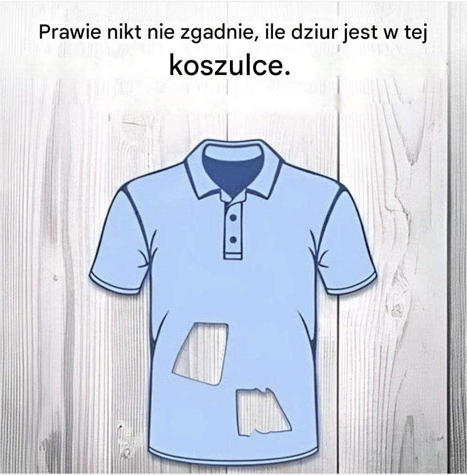Na pierwszy rzut oka wszystko wydaje się zupełnie zwyczajne: klasyczna koszula, taka, jaką nosimy na co dzień. Jednak jeden intrygujący szczegół sprawia, że przyglądamy się jej bliżej, a nawet kwestionujemy to, co myśleliśmy, że wiemy. A co, jeśli ta koszula skrywa mało znany sekret? Wizualny szczegół, który, nieświadomie, wystawia na próbę nasze neurony… Czy potrafisz zgadnąć, ile tak naprawdę jest w niej dziur?