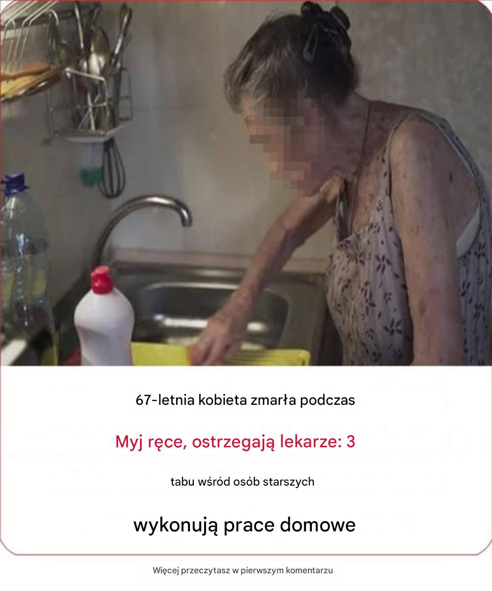 Lekarze ostrzegają: 67-letnia kobieta zmarła podczas mycia naczyń: 3 tabu w pracach domowych dla osób starszych