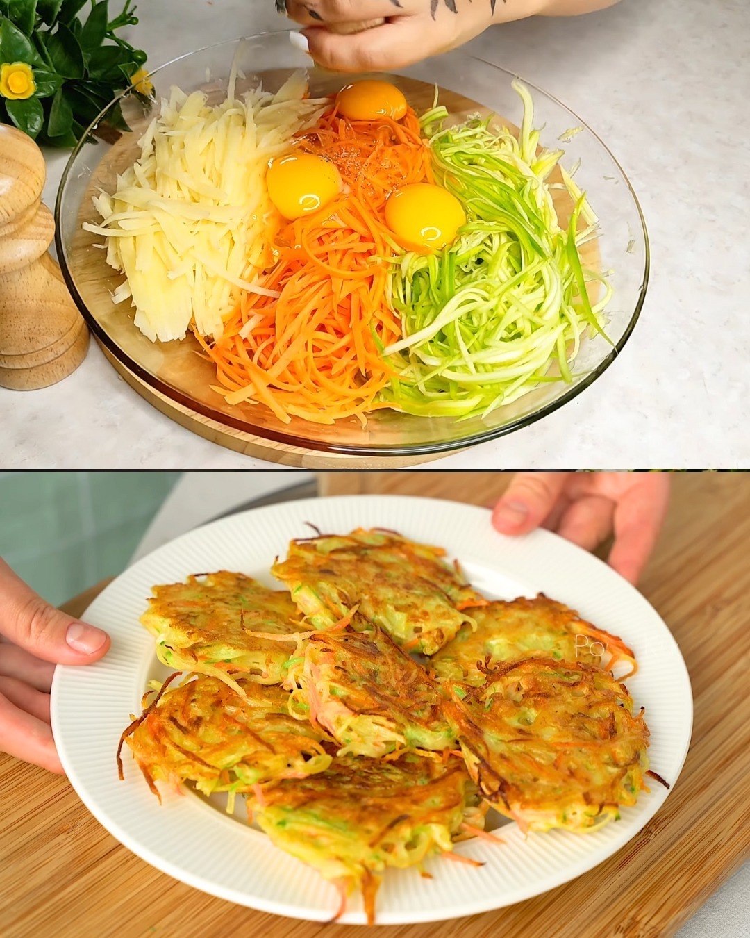 Upewnij się, że warzywa są dobrze starte i odsączone z nadmiaru płynu, aby naleśniki nie były zbyt rzadkie. Dopraw do smaku i dodaj sól lub przyprawy, jeśli chcesz.
